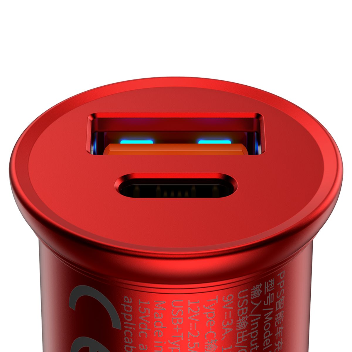 Baseus Circular Metal A+C 30W PPS Car Charger Red